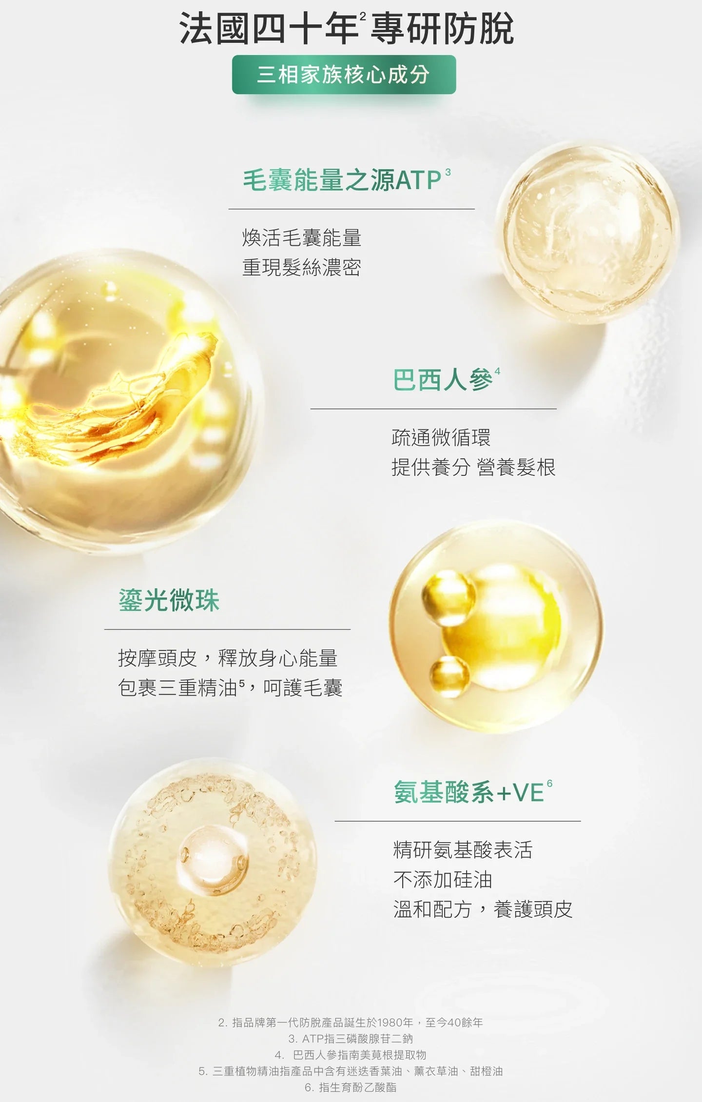 .結合ATP三磷酸腺苷、巴西人蔘:強韌鞏固、甦活育髮